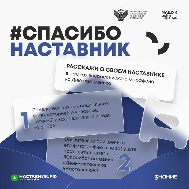 2 марта в России будет праздноваться День наставника. В преддверии этого события Центр знаний «Машук» совместно с Министерством просвещения Российской Федерации при поддержке Российского общества «Знание», платформы Наставник.РФ и национального проекта «Молодёжь и дети» запустили марафон благодарности #СпасибоНаставник.